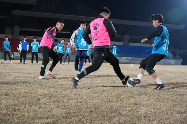 3月4日晚,湖州的气温降到10℃以下,冷风呼呼地吹。然而在湖州职业技术学院足球场上,几盏高悬的路灯将场地映照得格外明亮,一群奔跑的身影,正用汗水驱散着初春的寒意。